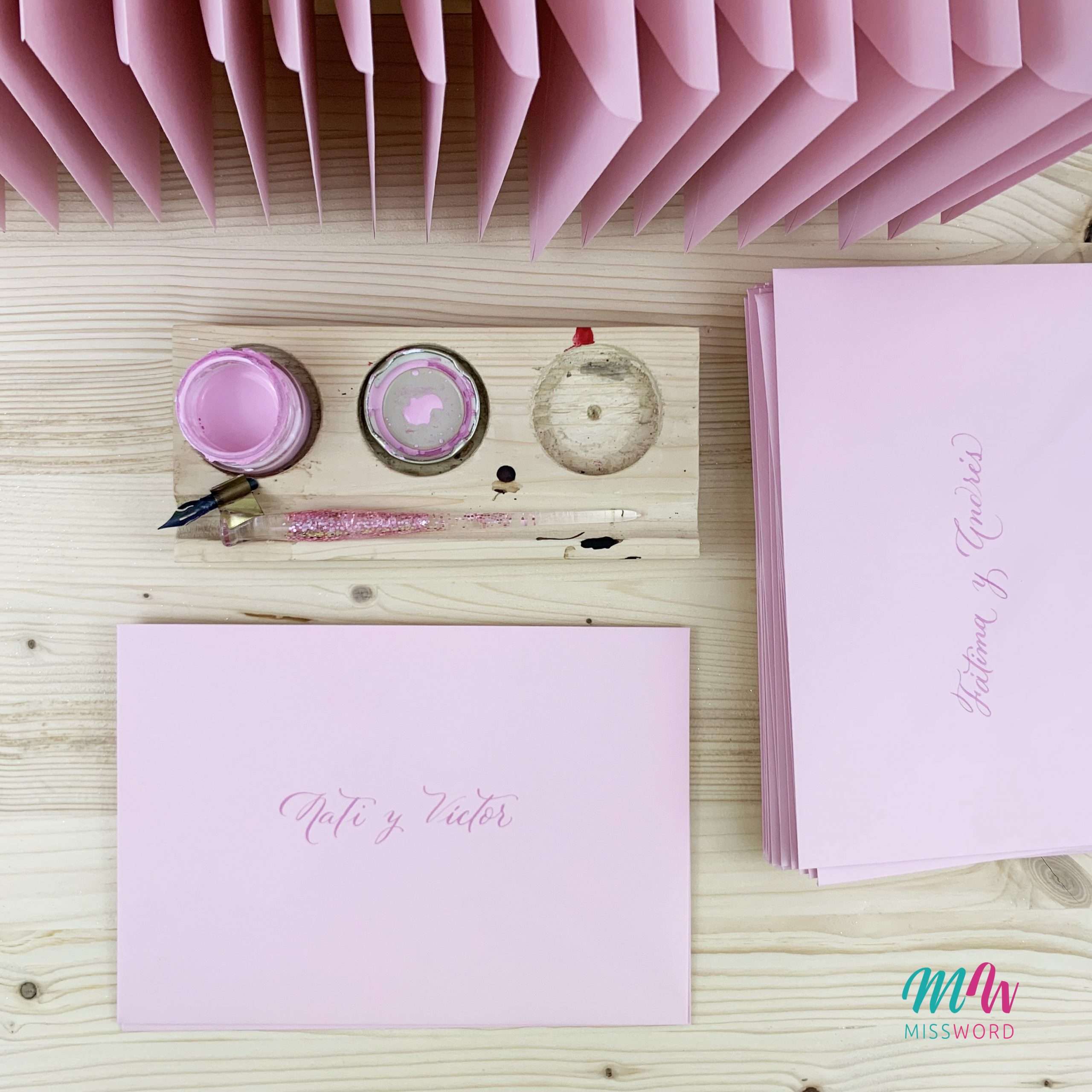 Elige el tipo de caligrafía que más se adapte al estilo de tu boda y entrega a tus invitados el sobre con sus nombres caligrafiados de forma que no pase desapercibido.