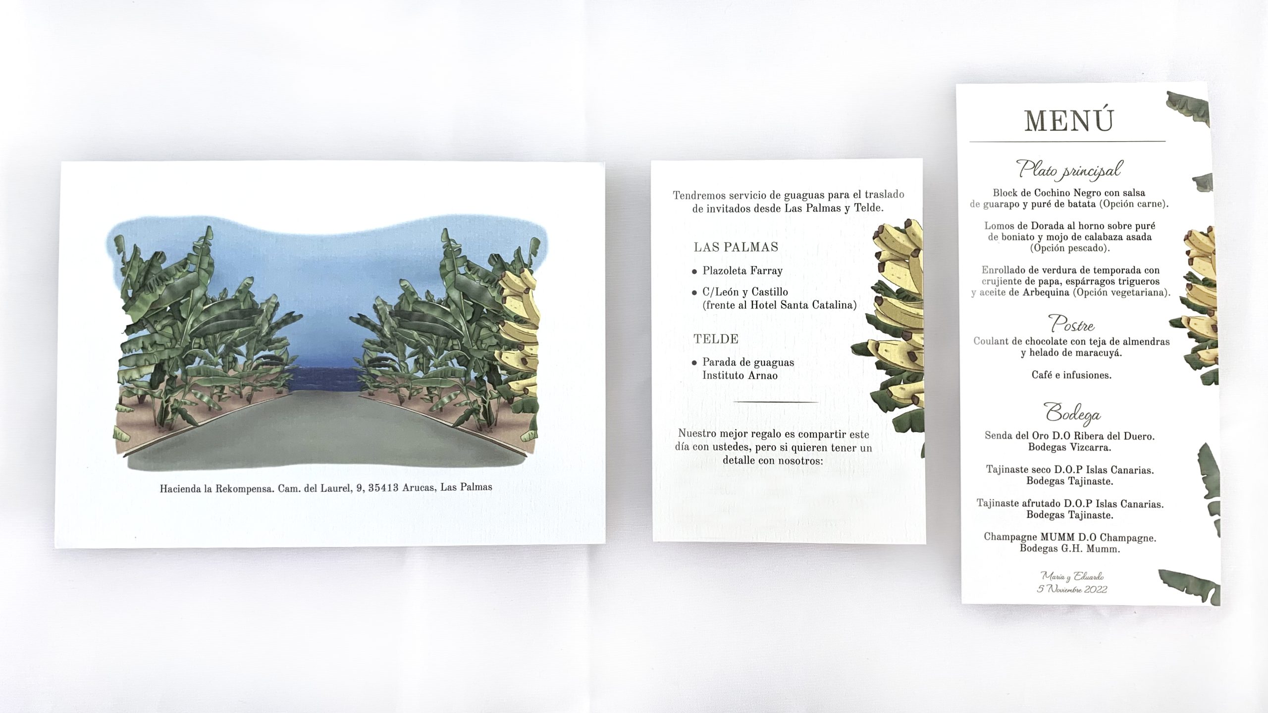 Esta será una de las partes más representativas del evento. Recogerá el estilo de tu boda y contendrá la información más relevante. Podrás elegir el papel, el tamaño, la forma, los colores, la tipografía, caligrafía, ilustraciones, dibujos… Adaptaremos cada detalle para que sea único.