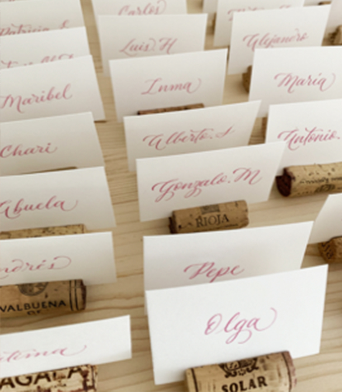 Además de las invitaciones, una boda incluye muchos detalles con los que podemos ayudarte: Cartel de bienvenida, marca sitios, meseros, cartelería, minuta, seating plan…Podemos realizar opciones creativas, poco vistas y siempre estamos abiertos a nuevos retos.